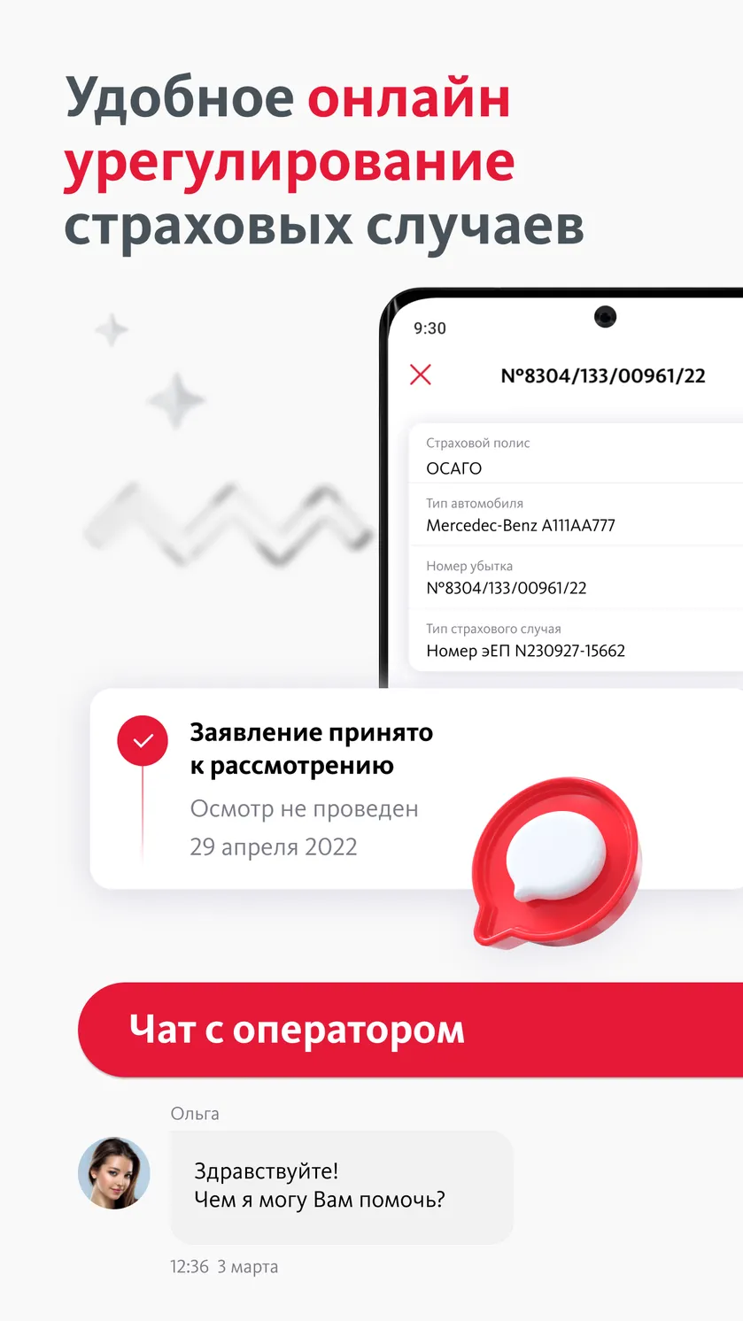 Приложение помогает держать полисы и действия «на случай X» под рукой: что делать при происшествии, какие документы нужны, куда нажать и как связаться с поддержкой.